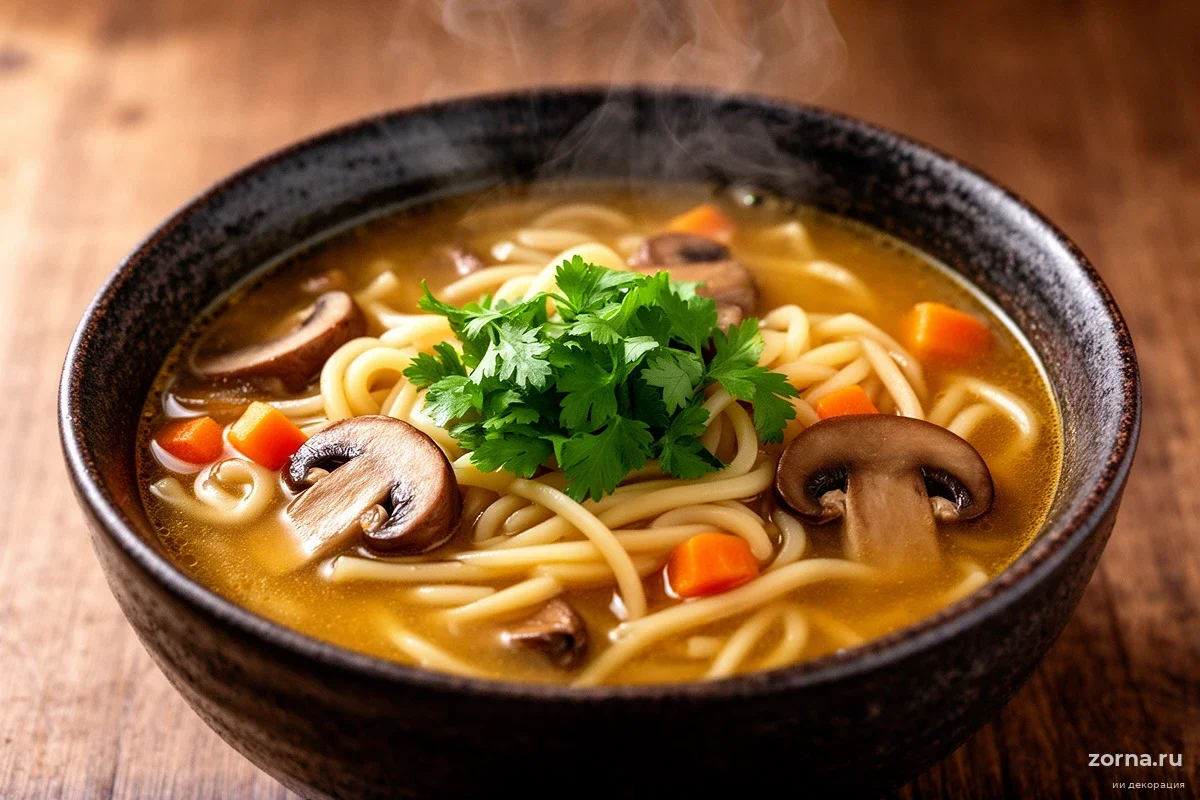 Наваристый постный суп из свежих шампиньонов и вермишели — сытное блюдо с насыщенным грибным бульоном, которое готовится без мяса. Рецепт идеален для быстрого обеда или ужина: аромат лесных грибов и кореньев не оставит равнодушным.